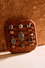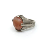 This strong ring holds a time-worn desert carnelian in a 4 prong setting. From Tuareg North Africa.