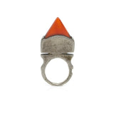 A classic Tuareg Tisik ring with a lovely thin profile. Likely originally a hair ornament, but works well as a statement ring, or pendant.  Material: Carnelian, silver