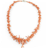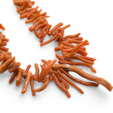 Beautiful branch coral necklace in a rich orange hue. The clasp is a finely filigreed box and tongue clasp. Longest coral branch is nearly 2" long