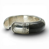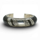 One of a collection of pieces made in collaboration with a Tuareg artist from Niger. A beautifully graphic and bold cuff bracelet that exhibits the intricate scribe work that comes out of the Saharan Desert. Lined in pure sterling silver for a smooth, healing touch.