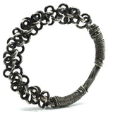 What a fantastic, express piece of metalwork! From tribal China, this feels ancient and modern at once. Not adjustable, best for a smaller hand.