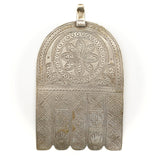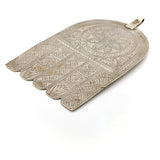 The Hamsa, or hand of Fatima is a symbol of good fortune and protection against ill-will. A little extra luck is something we can all keep in-hand. This piece is made in costal Morocco by Jewish silversmiths. I particularly love the outreached hands with star markings at the bottom.