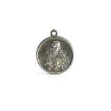 This is a beautiful religious charm featuring the Madonna and child on one side, and Jesus with the sacred heart on the other. The imagery is touching and the tenderness of wear and patina is even more so.