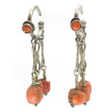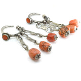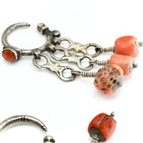 Beautiful old coral is the star of the show in these Berber earrings from North Africa. They are a dramatic length with fantastic movement. They have thicker ear loops of just under 1/8". But if you do not have gauged holes they make fabulous earcuffs!