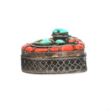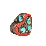 This particular example is vibrant and stunning with the deep tomato red coral and beautifully veined Chinese turquoise