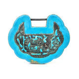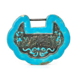 A spirit lock is an amulet to lock the soul of the wearer into their body in the case of illness, accident or depression. I think we all can use a little extra protection these days. This is an unusual Chinese lock with vibrant turquoise enamel. It is hollow and easy to wear attached to a chunky chain.