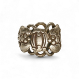 In Chinese symbology, the Bat is an auspicious symbol of blessings, good fortune, and longevity. This ring can be a daily good luck symbol. It has gorgeous 100 year old patina. As with all puzzle rings it can be separated into a chain of thing rings, and reassembled. it is tied securely with an antique pink thread.