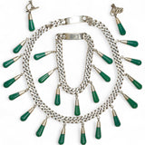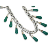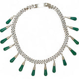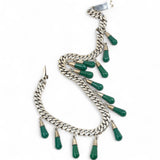 This is one of the necklaces that I feel should be in every collection. A chunky Mid-century curb chain adorned with elegant drops that are both elevated and casual. The silver has a perfect patina, and the creamy green onyx is easy to get lost in. Part of a set with a bracelet and earrings. Sold separately.