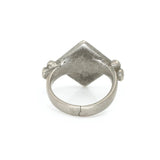 This is a Fulani ring from North Africa. It has an excellent patina and a classic form. The diamond is flanked with 3 globes.
