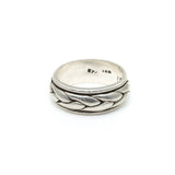 A classic Mexican design where the inner braided circle spins around the ring's frame. A perfect band to worry your troubles or occupy your fingers.