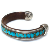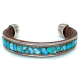 Federico Jimenez is known for bold and sensual turquoise designs made by hand in Mexico. This cuff is unusual for the leather interior which makes it easy to set and forget. Never removing and enjoying daily.