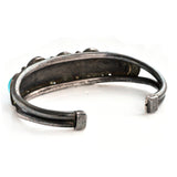 This cuff is an absolutly stand-out version of a traditional Native American bracelet. It is forged in heavy sterling silver, with unisex styling. The understated design elements make way for the spectacular gem quality turquoise stones in milky robin's egg blue. A really exceptional piece that you would cherish for years. Best fit for a medium to large wrist.