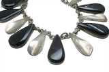 This quintessential Mexican necklace uses two ancient elements, silver and obsidian to exquisite ends. It is the perfect necklace to add a bit of drama to clean black dress.