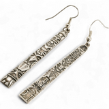 These tall totem earrings tell the tale of the Pacific Northwest. Traditionally the totem would tell narrative history of a tribe or family group, these earrings may not be authentically native American. They do however have exquisitely rendered creatures, from eagles to frogs, to wolves. Their long, lean form is flattering and sure to engage conversation.