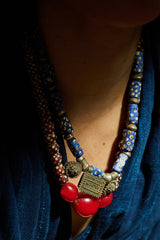 I have a particular fondness for skunk beads. What is not to love? Polka dots and rich history. These old eye beads were made as early as the 1800s and collected and traded across 3 continents. This necklace has a contemporary stringing, breathing new life into ancient history.