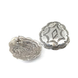 These concha style earrings are hand stamped and cut from sheets of silver, making them unique and very light. The scale is perfect for daily wear while making a style statement. They have developed a nice patina over the years, but can be easily polished to high shine.