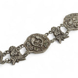 This is a spectacular chased collar from the early 20th century. It features delicately chased panels with fish, shanka shells and other symbols of fortune. Each panel is backed , and while it if airy, it reads as solid. This was purchased as Vietnamese. While it carries Chinese symbolism it may be from the Northern Vietnamese boarder with China. A truly spectacular and rare piece of craftsmanship.