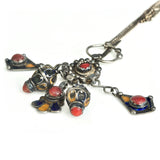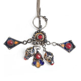 I'm always impressed by how North African's are able to wear jewelry everywhere. From headpieces to nose rings, to fantastic fibulas. This Fibula would have been used as a closure for a cloke or shirt and it is still perfectly functional, but we've put it in a chunky vintage chain for those of us that wear jewelry in a slightly less imaginative fashion. It is a great example of Berber style from the Atlas mountains with vibrant coral and enamel and an elegant shape that feels both luxe and wearable.