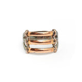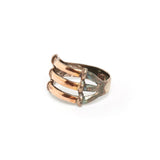 This simple split-shank ring has a base of sterling silver and an 18k gold face. The curvy low-profile makes this an easy everyday ring.