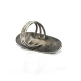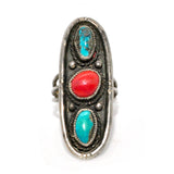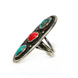 Raw and captivating, this elongated ring could easily become a bold signature piece. Material: Glass, turquoise, sterling silver
