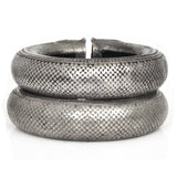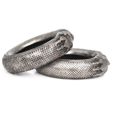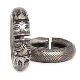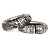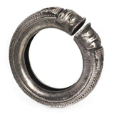 This is an exquisite set of cuffs from Madhya Pradesh, India. They Feature Makara, a mythical sea monster, which is the vehicle of the goddess Ganga, the personification of the Ganges, His magical powers are associated with fertility. They have torque so they twist to put on.