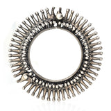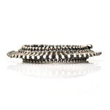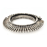 A dramatic bangle bracelet from the South Indian region of Orissa. The spiraling wheels have a feverish quality that looks stunning alone or stacked. The hinge makes for easy wearing.
