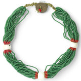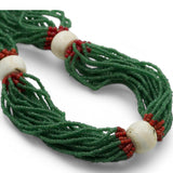Concha shell bead stations enrobed in tiny white-heart beads and multi strand celadon green beads. It is beautiful when worn, and inspiring to behold.