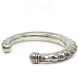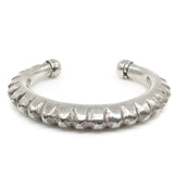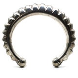 This cuff is the perfect accent piece to add texture to your collection.It is heavy silver hollow-form, so light with comfortable movement. It sits more like a bangle than a cuff. The soft peaks are visually interesting and the overall feeling is smooth and easy.