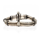 Rajasthani sterling woven snake bracelet with a hefty feel that works beautifully for a man or a woman. Pin closure.