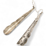 This is a long and lean pair of drop earrings, hand formed and stamped from sheet for a look that is extravagant, but very light. A winning combo.