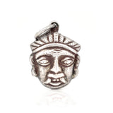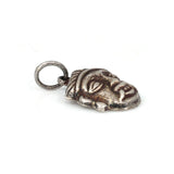 This unique head amulet depicts the Hindu hero Iravan who believed to cure disease and induce pregnancy in childless women. This minor god is celebrated in Tamil Nadu, and that is likely where this pendant originates. A lovely hollow-form charm with a very unusual presence.