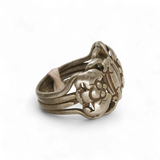 In Chinese symbology, the Bat is an auspicious symbol of blessings, good fortune, and longevity. This ring can be a daily good luck symbol. It has gorgeous 100 year old patina. As with all puzzle rings it can be separated into a chain of thing rings, and reassembled. it is tied securely with an antique pink thread.