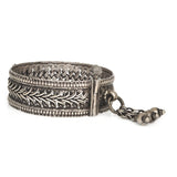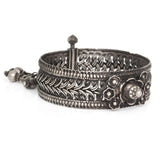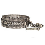 This is a gorgeous woven silver bangle from Orissa India. It is an early 20th c. example of Lotus flower design. The woven mature makes it light and easy to put on with the pin closure.