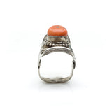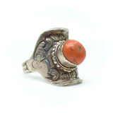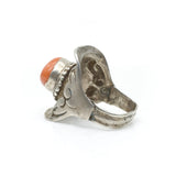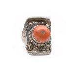 This is a wonderful old Tibetan ring saddle ting with spectacular creamy natural coral. The iconic design and fine chasing make this a real collectors item.