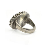 This is a wonderful antique Tibetian ring, featuring well-worn turquoise and nicely patinated silver. Turquoise was believed to prevent illness and this large ring would have been an important and treasured part of a daily wardrobe.